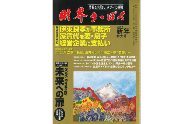 財界さっぽろ2026年新年特大号 メディア掲載情報2025.12.15 財界さっぽろ2026年1月号138ページにて、当社株式会社将軍ジャパンホールディングス会長の杉本好法を紹介する記事が掲載されました。