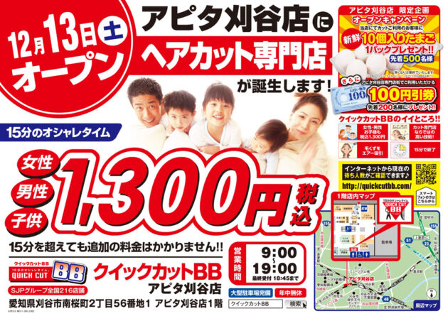 クイックカットBBアピタ刈谷店12/13オープン